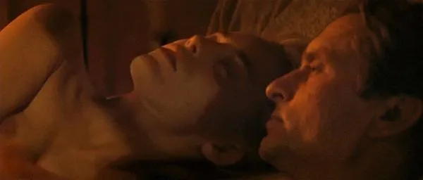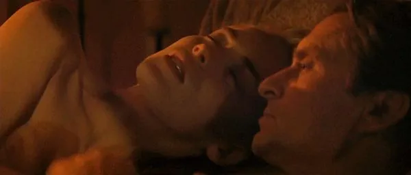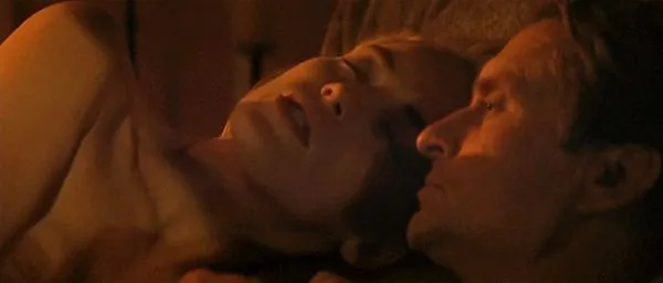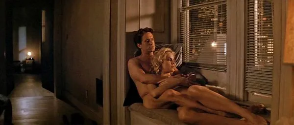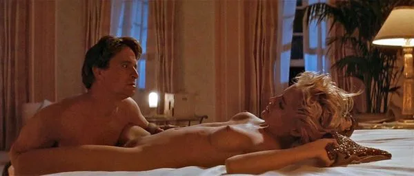 ஷரோன் ஸ்டோன் நிர்வாணமாக ஒரு படுக்கையில் அவள் முதுகில் படுத்துக் கொண்டிருக்கிறான். பையன் அவள் வயிற்றில் தலையை வைத்துக்கொண்டு அவளது வெற்று மார்பகங்களை தெரிந்துகொண்டு அவளுக்கு அருகில் படுத்துக் கொண்டிருக்கிறான்.
